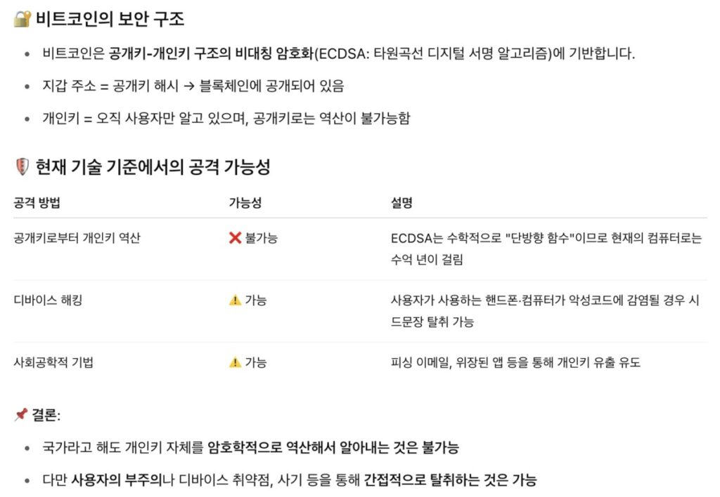 앗! 그렇다면 이 암호키를 해킹하면 국가가 개인이 소유한 비트코인에 접근할 수 있지 않을까?