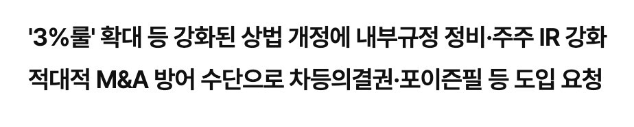 이번 상법 개정으로 인해 기업의 경영권이 위협받을 수 있다는 논란이 있지만 개인주주 입장에서는 그나마 이렇게라도 개선을 해야 권리를 지킬 수 있습니다.