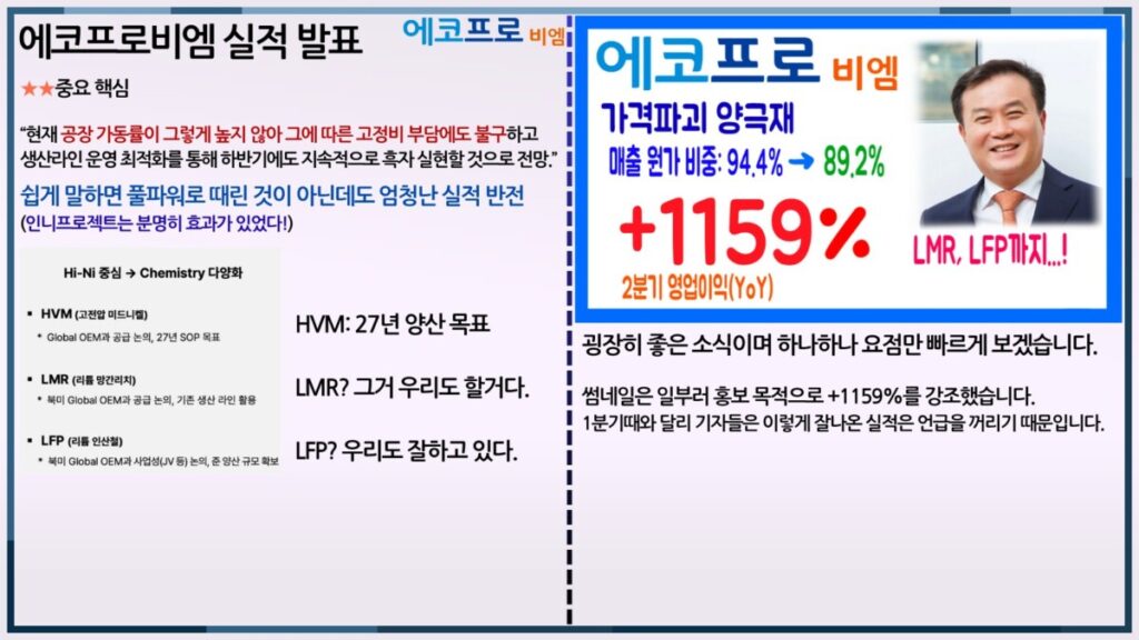 에코프로비엠 실적 당일, 지난 1분기 호실적에도 불구하고 기자들에게 쥐어터졌던 에코프로비엠이었기 때문에 다급하게 영상을 제작하여 올렸습니다.