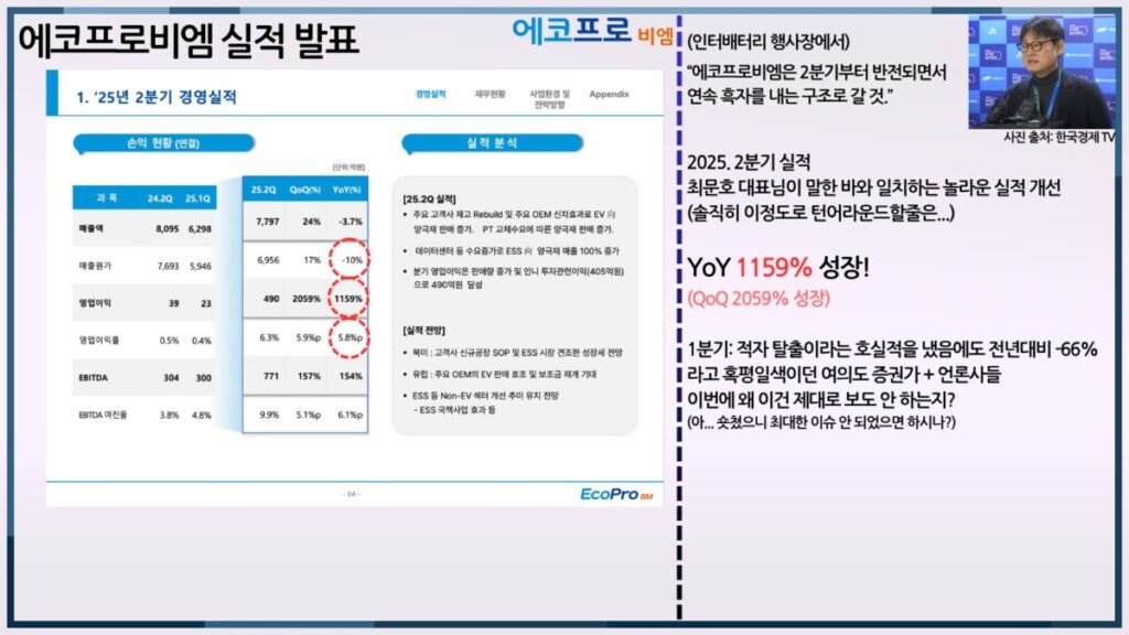 이는 1분기에 YoY -66%라며 기자들에게 신나게 까이던 에코프로비엠이 바로 다음 분기에 이어서 달성한 실적 성장이라는 점에서 분명한 의미가 있습니다.