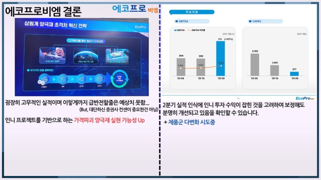 분기 숫자들도 중요하지만 에코프로비엠 관련해서는 가격파괴 양극재의 실현 가능성을 개인적으로 가장 중요하게 추적하고 있습니다.