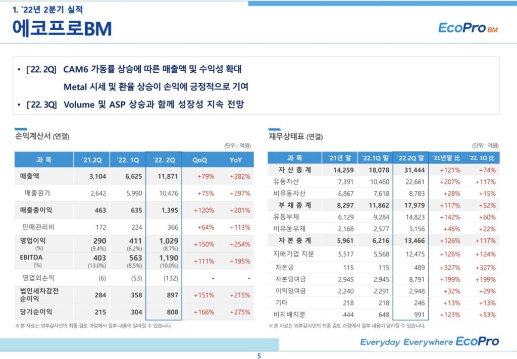 오늘 엄청난 에코프로비엠 2분기 실적 발표가 있었는데 챙길 내용이 굉장히 많음에도 불구하고 지난 1분기와 같이 흐지부지 묻힐 가능성이 있어 시간이 있는 김에 짧게 정리해서 업로드합니다.