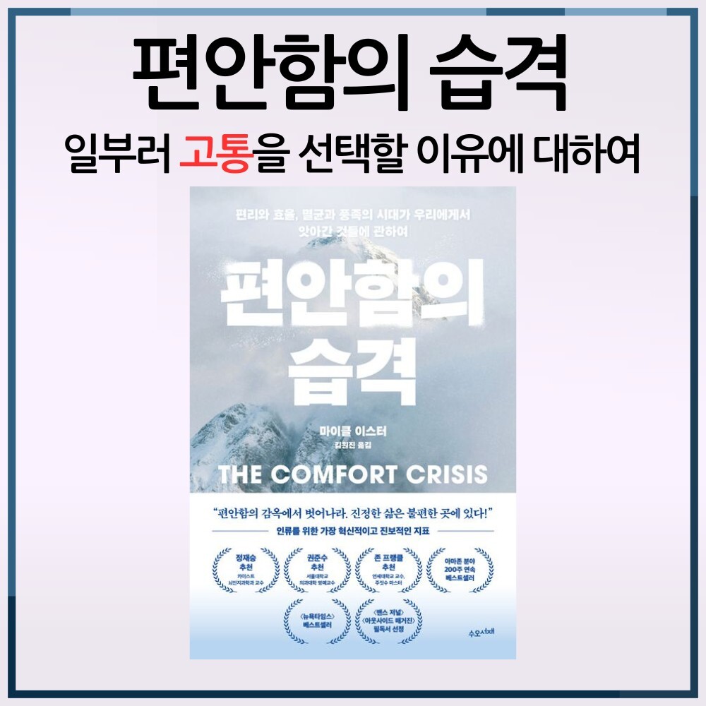 「편안함의 습격」은 선대인 소장님 추천으로 완독한 지 약 한 달정도가 지났지만 중요한 인사이트를 깔끔하게 정리하고 이 글을 혹시나 읽어주실지도 모를 독자님들과 나누어보려고 합니다.